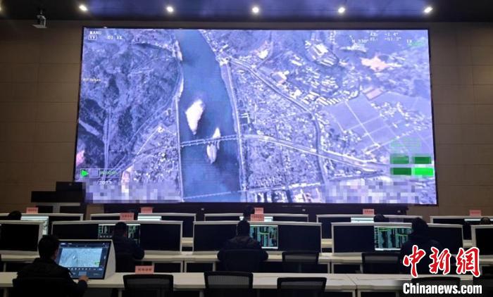 翼龍-2H應急救災型無人機EO畫麵傳(chuan) 回指揮中心大屏。航空工業(ye) 供圖
