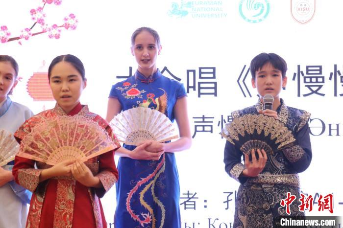 12月22日晚,哈薩克斯坦阿斯塔納,“漢語風采,中哈同歡”2024年阿斯塔納中文盛典暨元旦聯歡慶祝活動舉(ju) 行。圖為(wei) 身著中國傳(chuan) 統服飾的哈學生為(wei) 觀眾(zhong) 帶來精彩表演。 中新網記者 張碩 攝