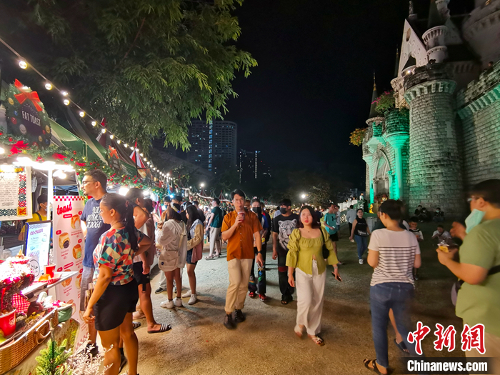 1月1日晚,位於(yu) 泰國曼穀的網紅打卡點喬(qiao) 德夜市遊人如織。 中新社記者 李映民 攝