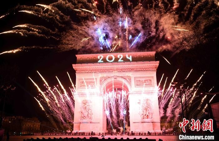 中新社巴黎1月1日電 (記者 李洋)法國巴黎舉(ju) 行跨年慶祝活動,迎來2024“奧運年”。數十萬(wan) 民眾(zhong) 當地時間1月1日淩晨聚集在香榭麗(li) 舍大街,慶祝新的一年到來。