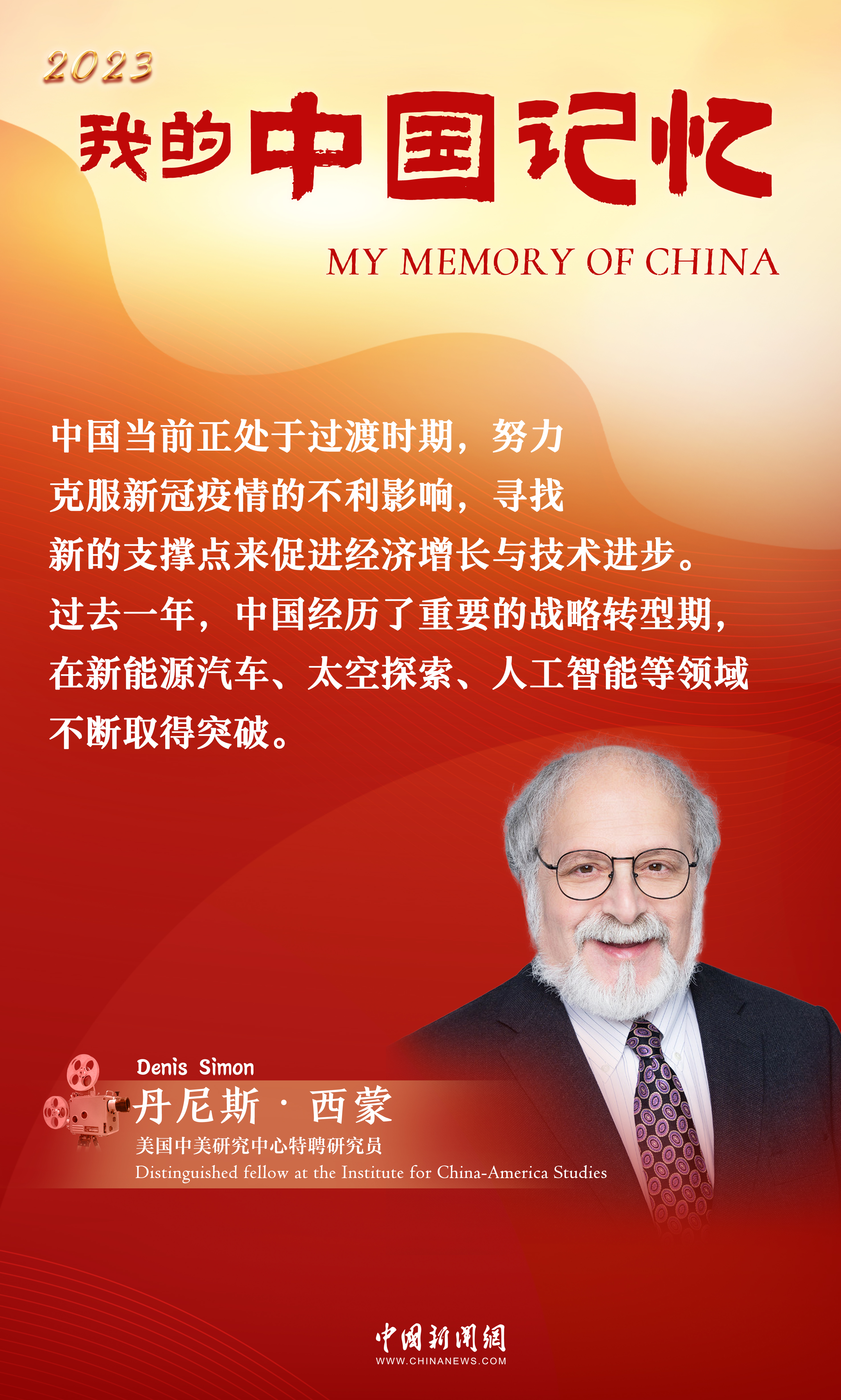 中新網12月29日電(記者 陳彩霞 孟湘君)2023年行至歲末,美國中美研究中心特聘研究員、前美國杜克大學校長中國事務高級顧問丹尼斯·西蒙(Danis Simon)接受中國新聞網專(zhuan) 訪表示,過去一年,中國經曆了重要的戰略轉型期,在新能源汽車、太空探索、人工智能等領域不斷取得突破,在全球供應鏈體(ti) 係中占據更加主動的地位,多行業(ye) 交出亮眼“成績單”。展望2024年,西蒙期待中國釋放更多發展潛力,在國際上發揮積極作用,助力和平解決(jue) 烏(wu) 克蘭(lan) 危機和促進中東(dong) 和平進程。