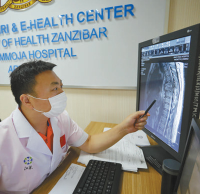 從(cong) 第一台X光機、CT設備,再到目前整個(ge) 桑給巴爾地區唯一一台核磁共振機,納茲(zi) 莫加醫院影像科的設備物資都來自中國捐贈。不久前,影像科還增添了遠程視頻設備。通過遠程技術,中國醫療隊可以對接中國國內(nei) 優(you) 質醫療資源,對當地複雜病例進行在線會(hui) 診。桑給巴爾地區現有的5名影像科醫生,就是在一批批中國醫療隊隊員的帶教下成長起來的。