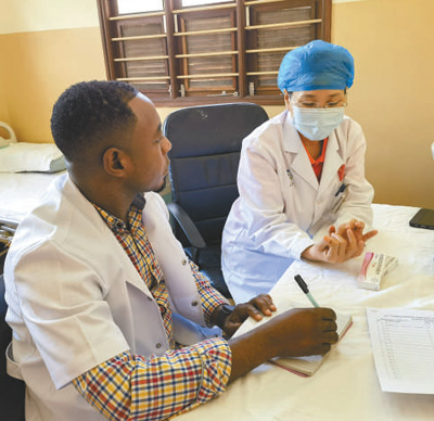 授人以魚,更要授人以漁。中國醫療隊在桑給巴爾組織多期線下多學科知識培訓和技術帶教,“手把手”傳(chuan) 授先進技術,交流診療心得。醫療隊隊員除了分享專(zhuan) 業(ye) 知識,介紹最新的醫學研究成果、診斷技術和治療方法,還帶著當地醫院的醫生到臨(lin) 床參與(yu) 實際診療,指導他們(men) 如何檢查患者、製訂治療計劃,以及與(yu) 患者有效溝通。培訓中,當地醫生常常被中國醫生的精湛技術和中醫文化的博大精深吸引。