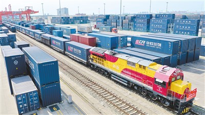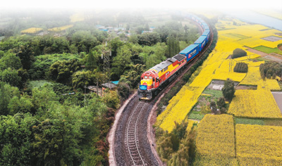 如今,在成都國際鐵路港,約每1小時有300單跨境電商達成交易,每2小時有一趟班列駛出或到達港區,每1天有2000車次進出集裝箱中心站……在四川省成都市青白江區,一列列滿載貨物的列車從(cong) 四麵八方匯聚到這裏,由此踏上通往世界的旅程。