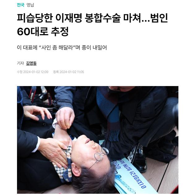 中新網1月2日電 綜合韓媒報道,當地時間2日,韓國最大在野黨(dang) 共同民主黨(dang) 黨(dang) 首李在明在釜山遇襲後,接受了縫合手術。
