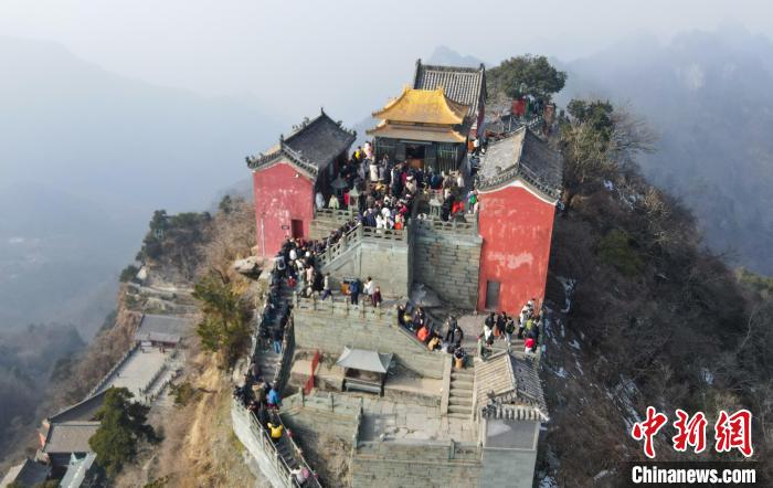 1月1日,武當山金頂上前來祈福的遊客絡繹不絕。(無人機照片)張倩龍 攝