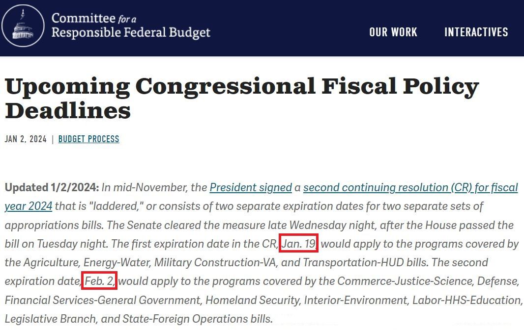 據悉,國會(hui) 議員們(men) 將在下周結束新年假期返回華盛頓,繼續解決(jue) 從(cong) 去年9月上一財年結束時延宕至今的政府支出問題,特別是及時處理上述兩(liang) 個(ge) 涉及“最後期限”的難題。