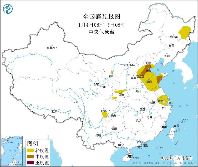 中央氣象台今晨繼續發布大霧黃色預警:預計,今晨至上午,山東(dong) 南部、安徽中北部、江蘇大部、湖北中部、湖南北部、江西東(dong) 部、福建西部、四川盆地南部等地的部分地區有大霧,其中山東(dong) 南部、江蘇南部、安徽中部、湖北中部、江西東(dong) 部等地的部分地區有能見度低於(yu) 500米的濃霧,局地有能見度低於(yu) 200米的強濃霧。此外,今明兩(liang) 天,華北南部、黃淮中東(dong) 部、江淮等地擴散條件較差,有輕至中度霾。
