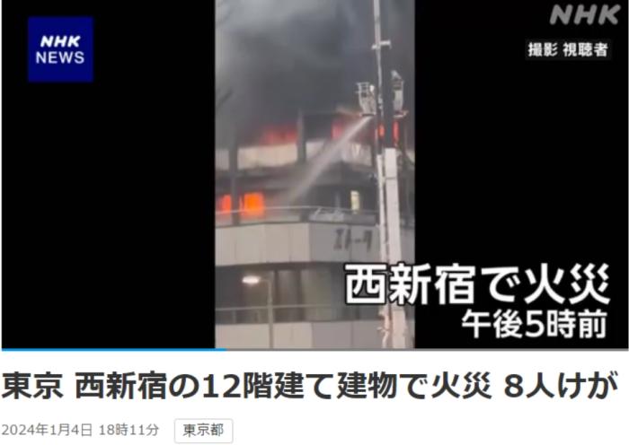 中新網1月4日電 據日本廣播協會(hui) (NHK)報道,當地時間1月4日傍晚,日本東(dong) 京新宿區的一棟12層建築發生火災,現場火光衝(chong) 天濃煙滾滾,目前已致8人受傷(shang) 。