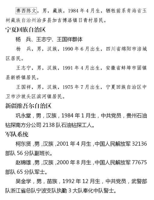 上榜勇士中有勇鬥持刀犯罪嫌疑人身負重傷(shang) 的張照傑、姚玉龍、王衝(chong) 、王永芳;有從(cong) 高橋跳水救人的周中磊、曾文文、周海;有從(cong) 隨時可能爆炸的事故車輛中救出司機母子的湯益鑫;有冒著煤氣罐爆炸危險製服劫持孩子歹徒的蔡國榮;有救援被困電梯內(nei) 同事而導致左小腿截肢的翟元敏;有休假期間水下連續救人的現役軍(jun) 人柯東(dong) 賢、吳金學、趙錦雄;更有見義(yi) 勇為(wei) 英勇犧牲的李偉(wei) 倫(lun) 、張嘉俊、張可可、李峰武、安西德、何同猛、曾維龍、胡喜明、李振華、東(dong) 周才仁、賽西陳文11位同誌。勇士們(men) 見義(yi) 勇為(wei) 事跡鼓舞人心、振奮精神、催人奮進。他們(men) 用血汗甚至生命秉承、詮釋了中華民族傳(chuan) 統美德,用奮不顧身的實際行動踐行了社會(hui) 主義(yi) 核心價(jia) 值觀。