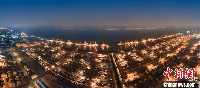 外高橋碼頭燈火通明,作業(ye) 繁忙。馬傑 攝