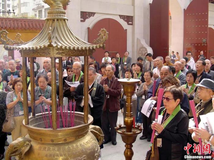 2004年,日本高野山真言宗佛教團團員在福州開元寺空海塑像前焚香祭拜空海大師。陳國明 攝