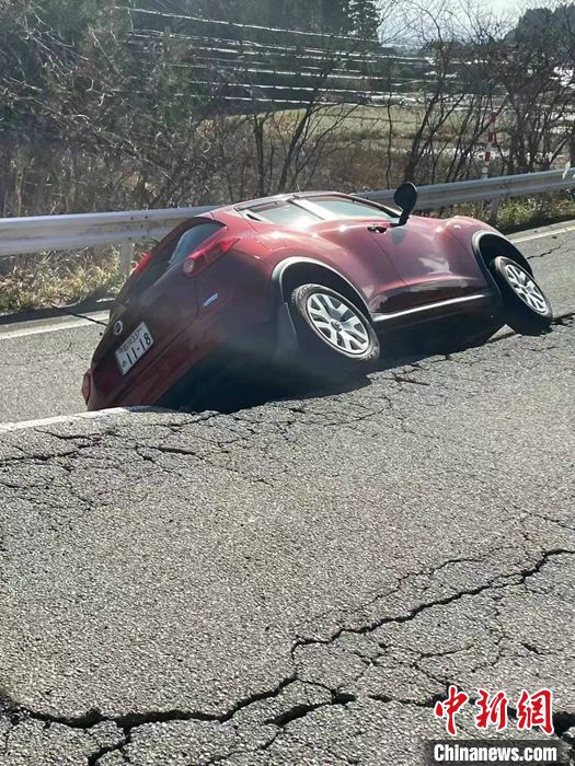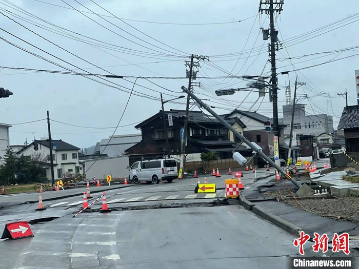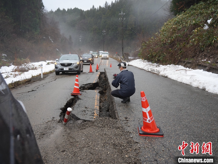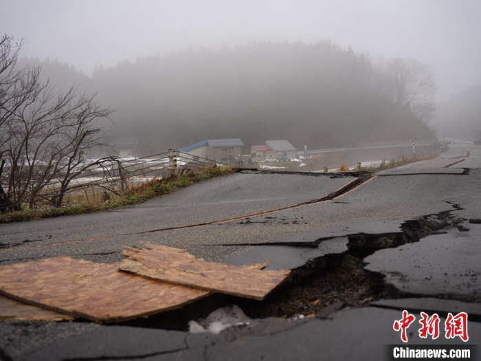 圖為(wei) 1月3日石川縣輪島市周邊,地震導致道路損壞。 中新社發 劉勇 攝