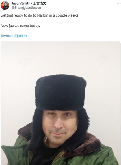 同樣對哈爾濱充滿興(xing) 趣的還有美國人上官傑文。他近日在社交媒體(ti) 上發布了一張自己頭戴帽子身穿大衣的照片,配文說,“準備幾周後去哈爾濱。新外套送來了。”