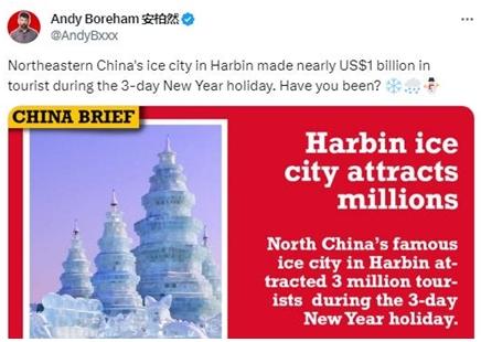 新西蘭(lan) 媒體(ti) 人安柏然也在社交媒體(ti) 上圖文並茂地介紹了哈爾濱的旅遊熱潮。對此,有網友在其帖文下評論說,“看上去是個(ge) 很棒很受歡迎的地方。這絕對在我的清單上。”