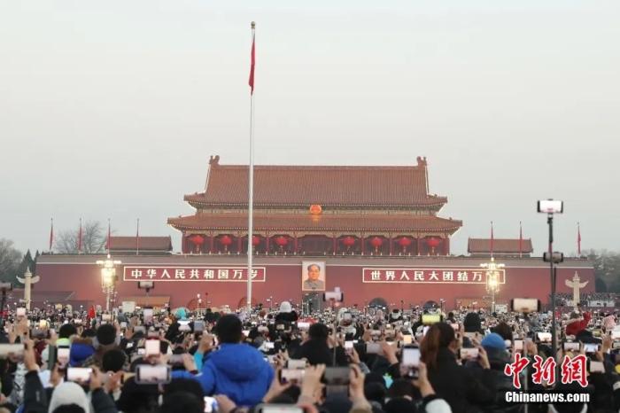 2024年1月1日晨,北京天安門廣場舉(ju) 行隆重的升國旗儀(yi) 式。中新社記者 蔣啟明 攝