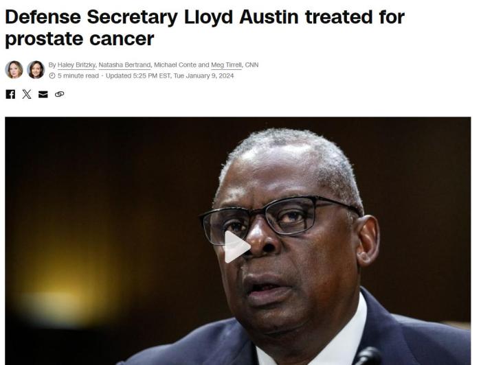 中新網1月10日電 綜合外媒報道,當地時間9日,美國沃爾特·裏德國家軍(jun) 事醫學中心發布的一份聲明指出,美國國防部長奧斯汀被診斷出患有前列腺癌,並出現並發症,導致他於(yu) 1月初被送往醫院。目前,奧斯汀仍在接受治療。