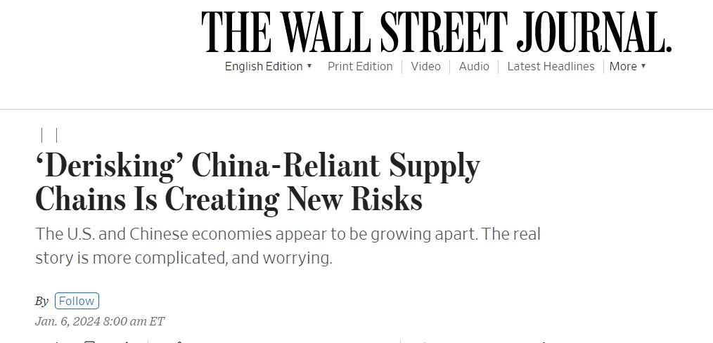 中國日報網1月8日電 美國《華爾街日報》網站報道稱,最新研究揭示了美西方針對中國供應鏈實施“去風險化”政策的實際效果。初步結論令人擔憂:旨在打造彈性供應鏈的相關(guan) 措施,可能是虛幻的。結果將導致全球供應鏈變得更為(wei) 複雜,反而會(hui) 產(chan) 生新的風險。