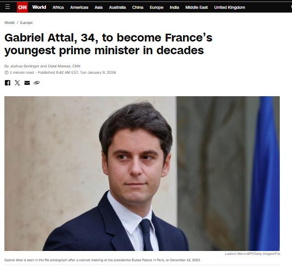 據報道,現任法國國民教育和青年部長阿塔爾,將成為(wei) 自1958年法蘭(lan) 西第五共和國成立以來該國最年輕的總理。