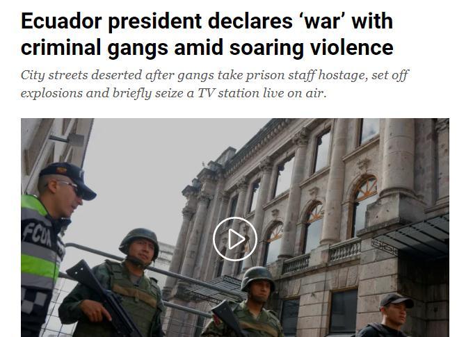 中新網1月11日電 綜合外媒報道,厄瓜多爾總統諾沃亞(ya) 當地時間10日宣布,該國正處於(yu) “戰爭(zheng) 狀態”。