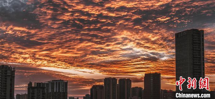 中新網昆明1月11日電 (黃興(xing) 鴻)11日黃昏時分,雲(yun) 南昆明、德宏、臨(lin) 滄等地的天空出現密集的“魚鱗雲(yun) ”。在夕陽的映照下,似霞似錦,如夢如幻。眾(zhong) 多網友在手機上的社交平台上狂熱“曬”雲(yun) ,為(wei) 彩雲(yun) 之南“上分”。