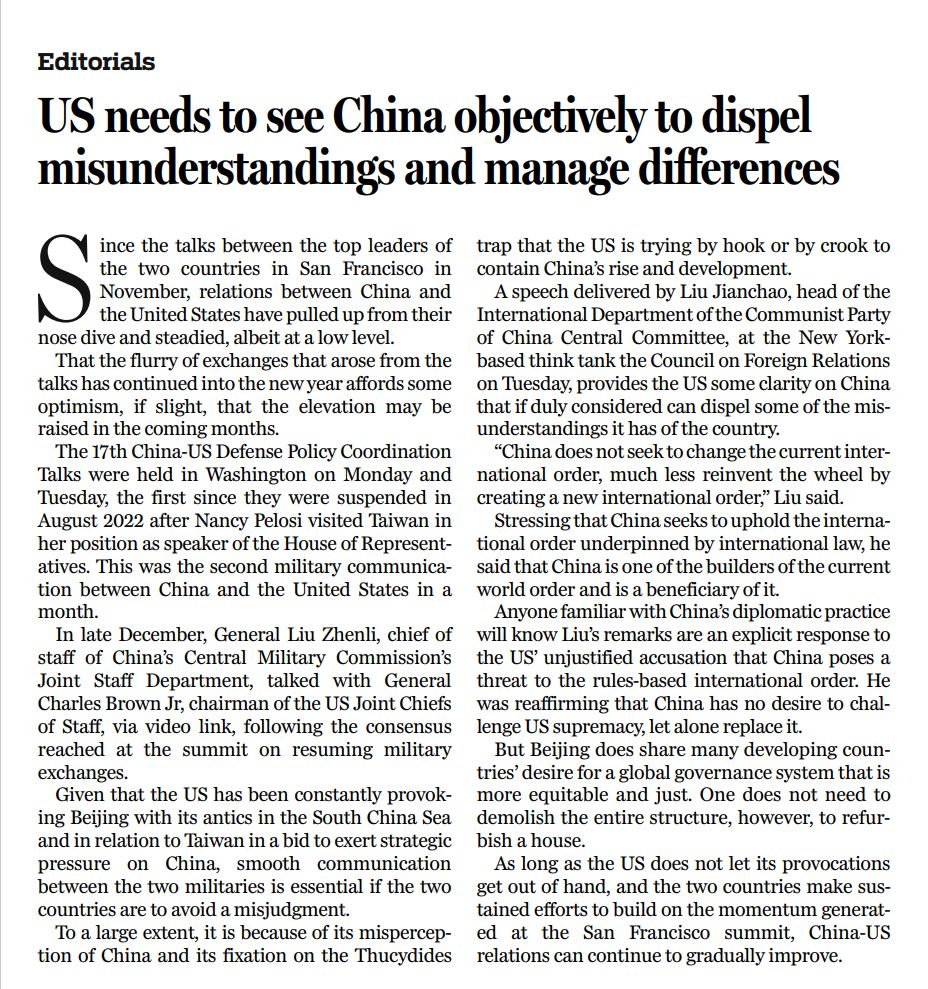 原文標題:US needs to see China objectively to dispel misunderstanding and manage difference
