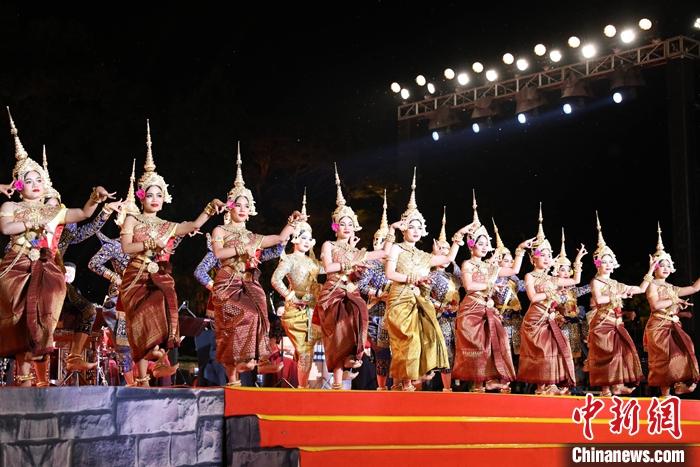 1月13日晚,“中柬人文交流年”啟動儀(yi) 式在柬埔寨暹粒舉(ju) 行。圖為(wei) 柬埔寨舞蹈藝術家表演傳(chuan) 統舞蹈。 中新社發 黎海月 攝
