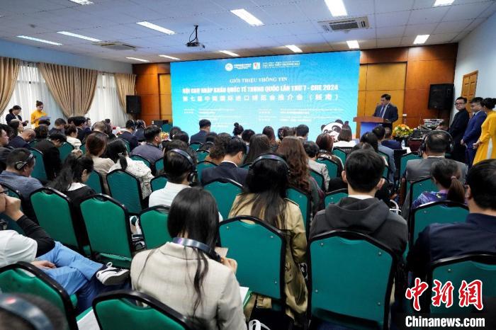 中新網北京1月17日電 當地時間16日下午,第七屆中國國際進口博覽會(hui) 推介會(hui) 在越南河內(nei) 舉(ju) 辦,超100家越南企業(ye) 和機構參會(hui) 。