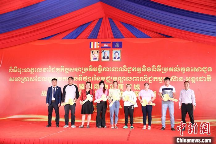 當天,東(dong) 盟國際物流商貿城舉(ju) 行戰略合作夥(huo) 伴簽約儀(yi) 式,並向首批入駐商家交付店鋪鑰匙。柬埔寨商業(ye) 部、金邊市政府、中國駐柬埔寨大使館等相關(guan) 官員,柬埔寨僑(qiao) 社代表、商界領袖以及來自各國的商業(ye) 合作夥(huo) 伴共同出席前述活動。