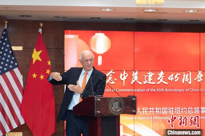當地時間1月17日,中國駐紐約總領館舉(ju) 行中美建交45周年招待會(hui) 。圖為(wei) 美中關(guan) 係全國委員會(hui) 主席歐倫(lun) 斯致辭。 中新社記者 廖攀 攝