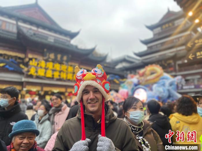 1月21日,2024豫園燈會(hui) 正式亮燈,一名西班牙小夥(huo) 兒(er) 在現場觀燈。中新網記者 鄭瑩瑩 攝