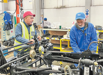 走進位於(yu) 南非伊麗(li) 莎白港庫哈工業(ye) 園的北汽南非工廠,焊裝車間內(nei) 機械臂排列整齊,幾組樣車正在調試,中國師傅正在指導當地員工完成焊裝工作。據介紹,目前已有多批次南非員工熟悉並掌握北汽產(chan) 品的生產(chan) 流程,成為(wei) 公司的生力軍(jun) 。