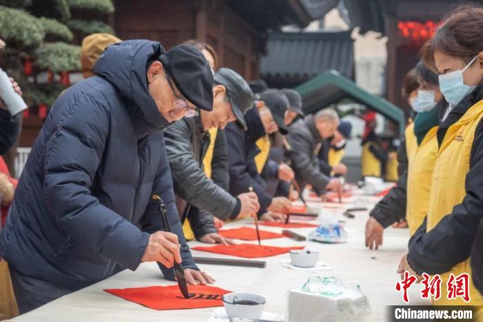據了解,玉佛禪寺在迎新春係列慈善活動中,將書(shu) 寫(xie) 的“福”字廣贈市民遊客,這樣的活動已持續15年。2022年開始,玉佛禪寺新春送福活動納入上海統一戰線民生實事項目“送‘福’百萬(wan) 家”。今年,玉佛禪寺新春送福活動持續七天,現場題寫(xie) 的每一張“福”字都承載著送福、添福、祝福的吉祥內(nei) 涵。