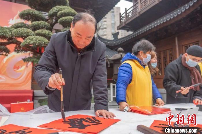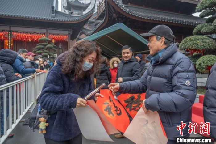 上海覺群書(shu) 畫院院長樂(le) 震文表示,上海覺群書(shu) 畫院連續多年共同參與(yu) 玉佛禪寺發起的新春送福活動,用書(shu) 法作為(wei) 媒介回饋社會(hui) ,在農(nong) 曆新春到來前為(wei) 大眾(zhong) 現場題寫(xie) 飽含祝福的“福”字,奉上書(shu) 畫家們(men) 衷心的祝福。