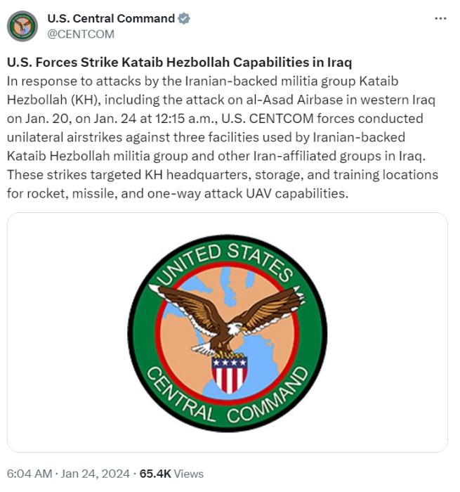 據報道,奧斯汀在聲明中表示,此次襲擊“是對伊朗支持的民兵武裝在伊拉克和敘利亞(ya) 針對美國和聯軍(jun) 人員的一係列襲擊的直接回應”。他表示,襲擊目標是民兵武裝“真主黨(dang) 旅”和其他武裝組織在伊拉克使用的3處設施。