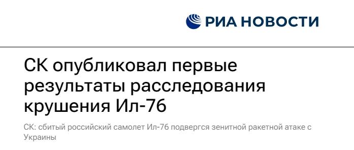俄羅斯偵(zhen) 查委員會(hui) 在聲明中表示,正在對機身碎片等物體(ti) 進行專(zhuan) 業(ye) 鑒定,同時詢問事件目擊者並繼續進行現場調查。根據初步調查結果,可以確定伊爾-76運輸機遭到了來自烏(wu) 克蘭(lan) 境內(nei) 的防空導彈襲擊。