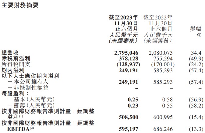1月24日晚間,東(dong) 方甄選公布的財報數據顯示,在截至2023年11月30日的六個(ge) 月內(nei) ,東(dong) 方甄選總營收27.95億(yi) 元,同比增長34.4%;淨利潤2.49億(yi) 元,同比下滑57.4%;經調整淨利潤為(wei) 5.95億(yi) 元,同比下滑13.3%。