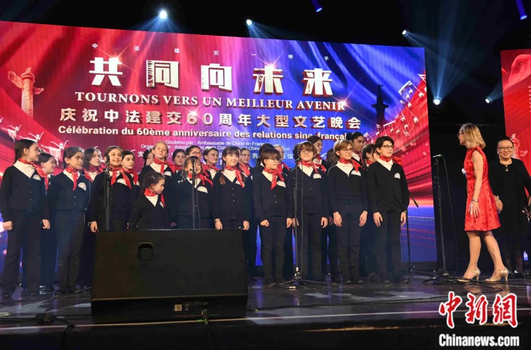 當地時間2024年1月16日晚,以“共同向未來”為(wei) 題的慶祝中法建交60周年大型文藝晚會(hui) 在巴黎舉(ju) 辦。圖為(wei) 法國寶利聲童聲合唱團演唱歌曲。李洋 攝