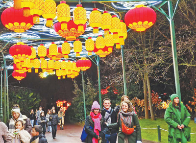 法國民眾(zhong) 在巴黎舉(ju) 行的豫園燈會(hui) 上遊覽。