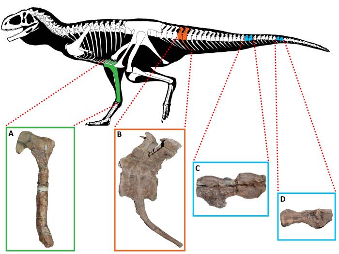 受病變影響的巴塔哥尼亞(ya) 阿貝力龍骨骼。A.柯氏基爾梅龍右脛骨內(nei) 側(ce) 視圖;B.加氏奧卡龍的第5和第6尾椎骨及第5脈弓左側(ce) 視圖;C和D為(wei) 迷霧齧王龍的中和後尾椎骨左側(ce) 視圖(圖片來自Ales)。施普林格·自然/供圖
