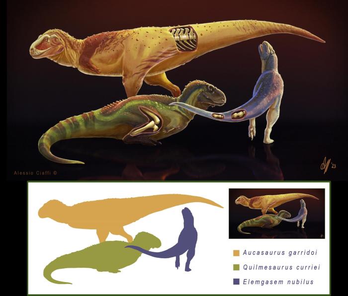 在本項研究中,論文第一作者兼通訊作者、香港中文大學和阿根廷國立內(nei) 格羅河大學Mattia A. Baiano與(yu) 同事及合作者一起,利用計算機斷層掃描(CT)和骨骼組織學分析,研究了3組獸(shou) 腳類恐龍的化石遺骸——分別來自加氏奧卡龍、迷霧齧王龍和柯氏基爾梅龍,它們(men) 均生活在白堊紀晚期(距今約9000萬(wan) 至7000萬(wan) 年前)的南美洲。3個(ge) 物種均為(wei) 阿貝力龍科的獸(shou) 腳類恐龍,這類恐龍的典型特征是前肢極短,頭骨深且有力並常生有冠、角等骨質裝飾部位。