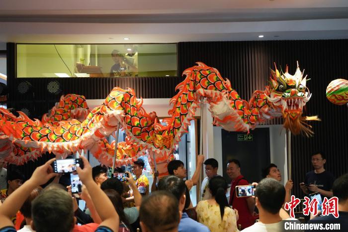 圖為(wei) 聯歡會(hui) 現場的舞龍表演。張興(xing) 龍 攝