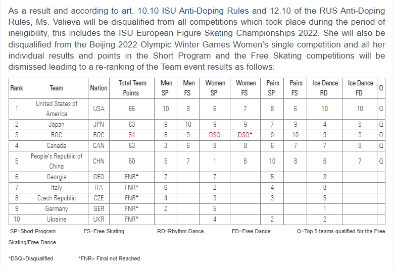 當地時間30日,國際滑聯對北京冬奧會(hui) 花樣滑冰團體(ti) 成績進行了重新計算,瓦利耶娃所獲得的成績積分被取消,俄羅斯奧委會(hui) 代表團在花樣滑冰團體(ti) 項目中的金牌變為(wei) 銅牌。