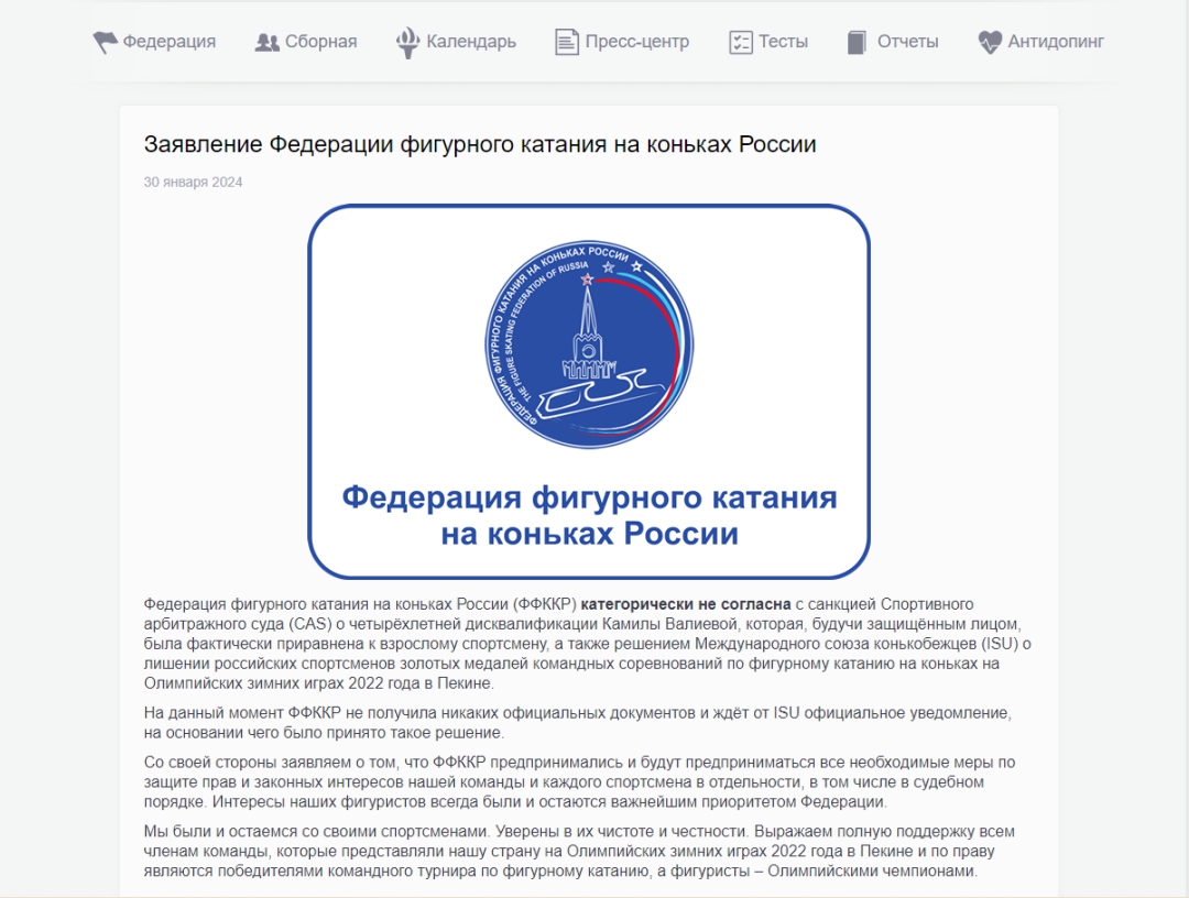 圖片來源:俄羅斯花樣滑冰聯合會(hui) 網站截圖