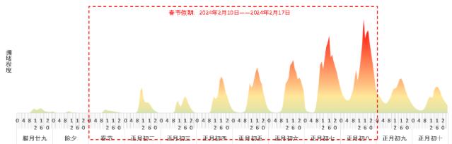 預計春節期間(含除夕),全國高速公路日均流量約為(wei) 5030萬(wan) 輛,較2023年春節同期日均增長11.6%左右。整個(ge) 春節流量峰值出現在春節假期的最後一天(正月初八),預計達6520萬(wan) 輛左右,創曆年春節流量新高。