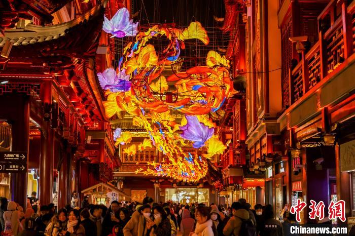 上海豫園商城凝暉路上的“一夜魚龍舞”主題燈組。(複星國際供圖)