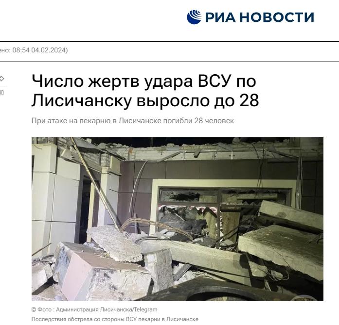 中新網2月4日電 據俄新社報道,當地時間4日,盧甘斯克地區領導人帕謝奇尼克在社交媒體(ti) 上發文稱,該地區利西昌斯克市一家麵包坊遭烏(wu) 軍(jun) 炮擊,已造成28人死亡,其中包括一名兒(er) 童。