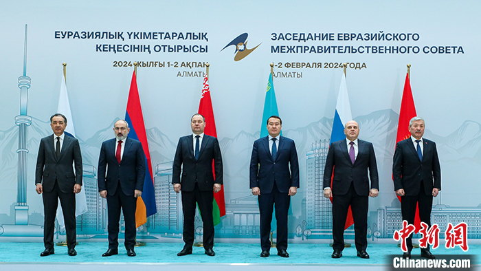 當地時間2月2日,哈薩克斯坦阿拉木圖,歐亞(ya) 政府間理事會(hui) 會(hui) 議舉(ju) 行。 中新社發 哈薩克斯坦總理府網站供圖