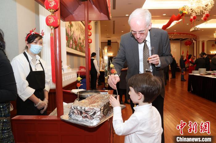 當地時間2月1日晚,加拿大首都渥太華,中國駐加拿大大使館舉(ju) 行2024年春節招待會(hui) 。圖為(wei) 現場製作的中國風味小吃冰糖葫蘆吸引來賓品嚐。中新網記者 餘(yu) 瑞冬 攝