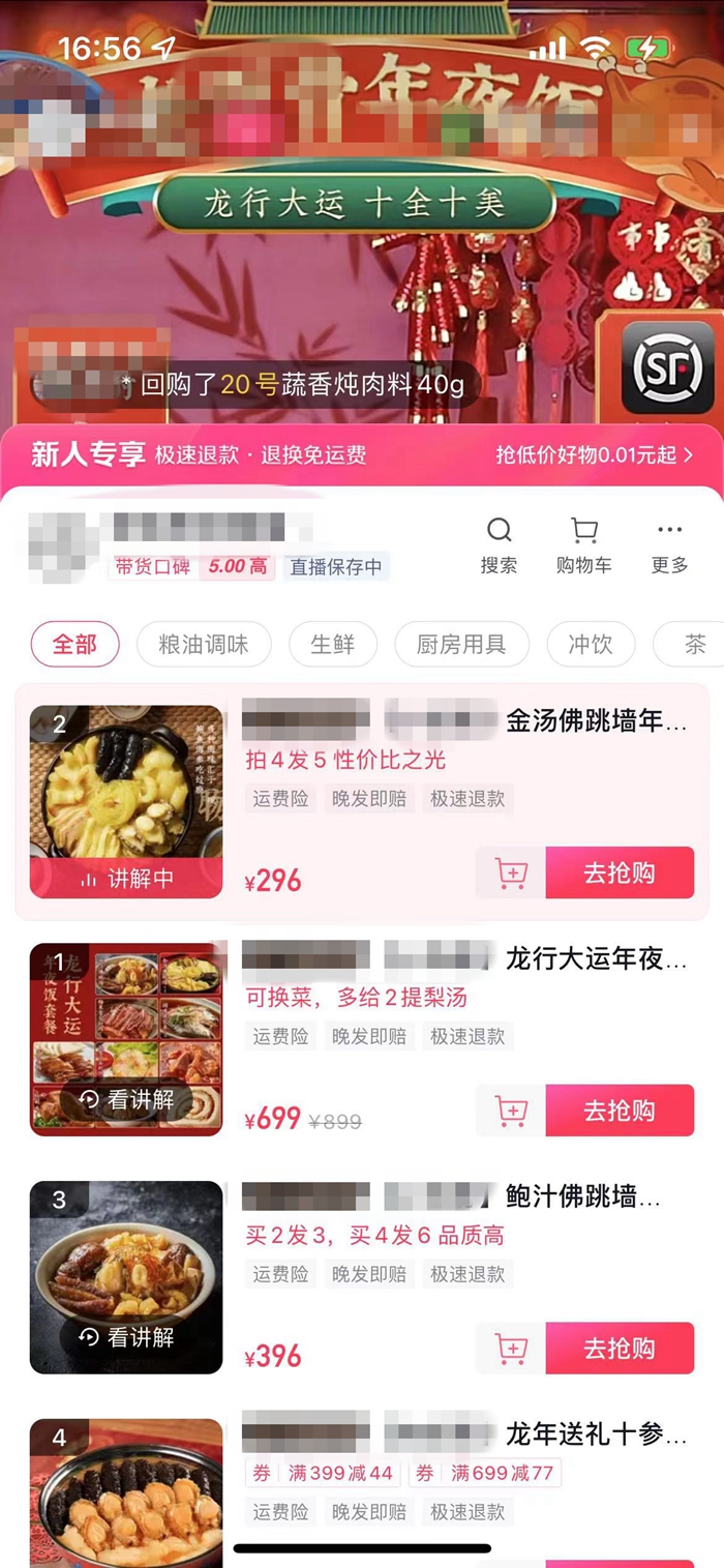 預製菜年夜飯在網上熱銷。截圖